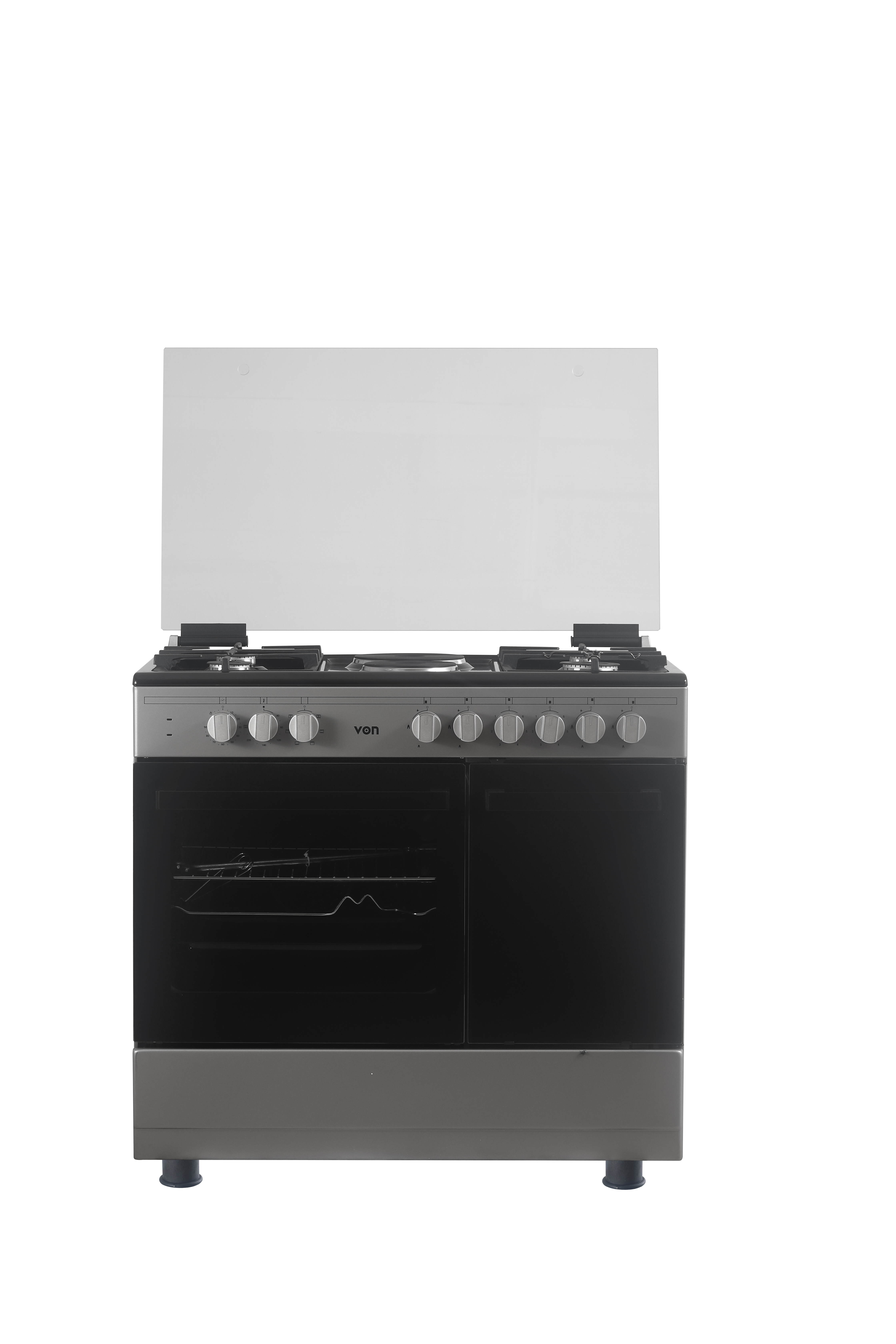 VON VCF563141NFG Freestanding Cooker – 3 Gas + 1 Electric Burners, Enamel Pan Support