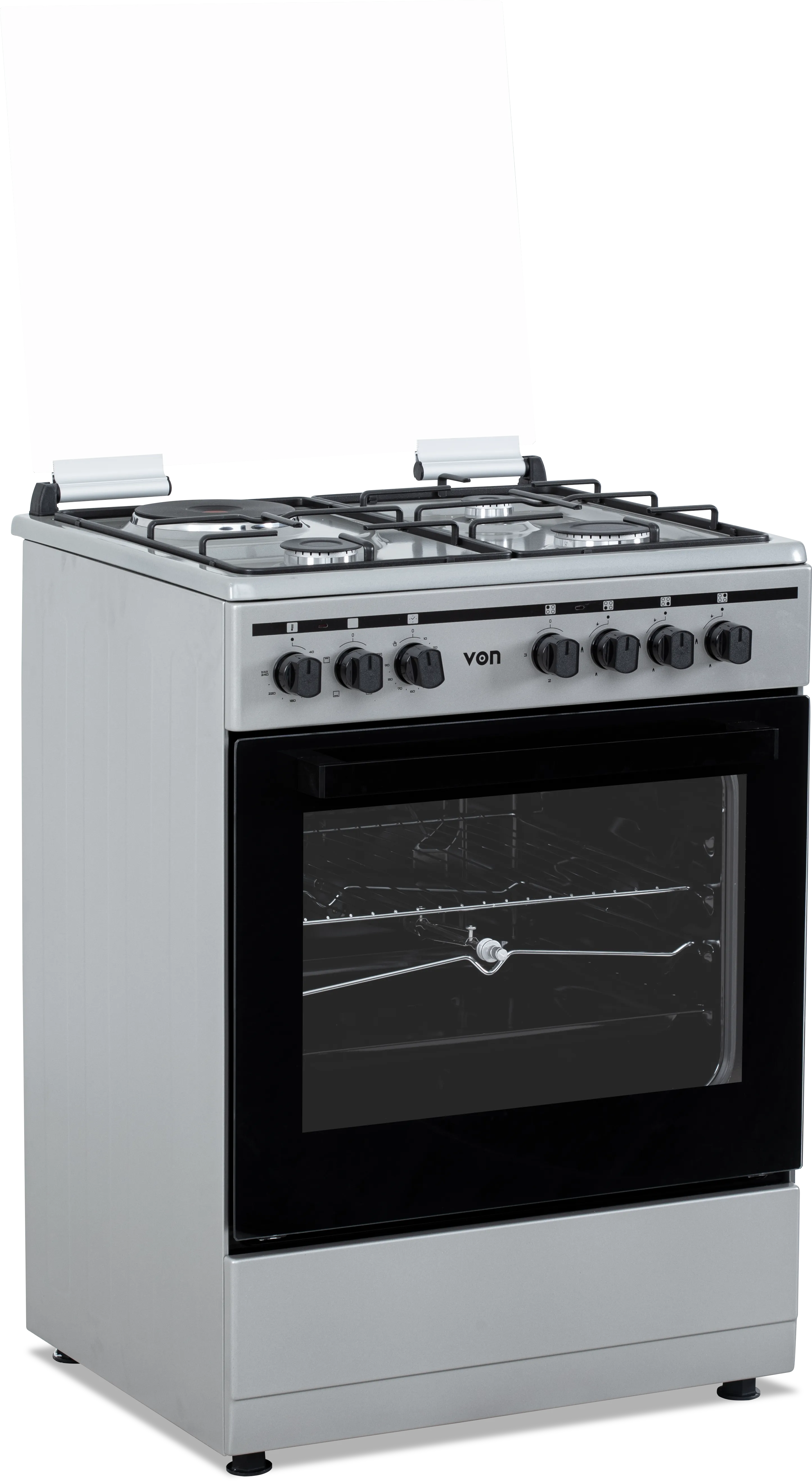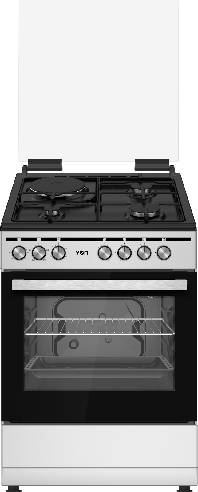 VON VCF653141NSY Freestanding Cooker – 3 Gas + 1 Electric Burners, Thick Enamel Pan Support